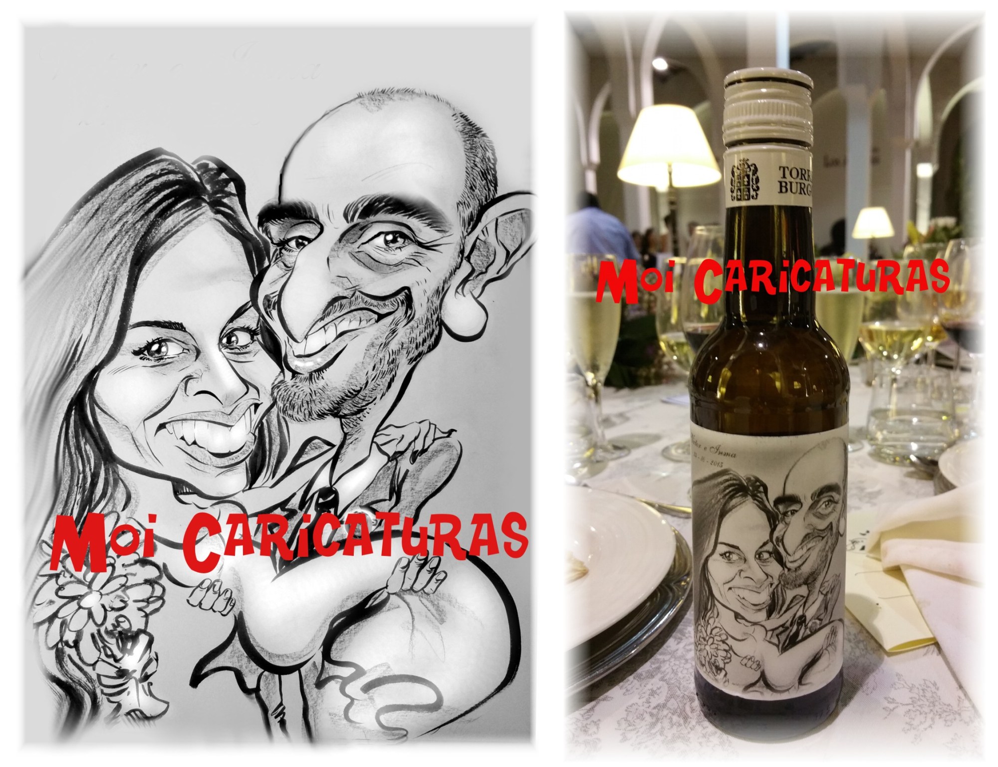 Caricaturas para etiquetas de botellas de vino. 25 octubre, 201528 diciembre, 2024 por Moi Caricaturas, posted in Caricaturas para bodas y eventos sociales, Caricaturas por encargo. Un detalle muy original y simpático. Si os decidís por regalar botellas de vino en vuestra boda, ¿ por qué no etiquetarlas con vuestras caricaturas ? Comparte: Haz clic para compartir en X (Se abre en una ventana nueva) X Haz clic para compartir en Facebook (Se abre en una ventana nueva) Facebook Me gusta Cargando... Relacionado
